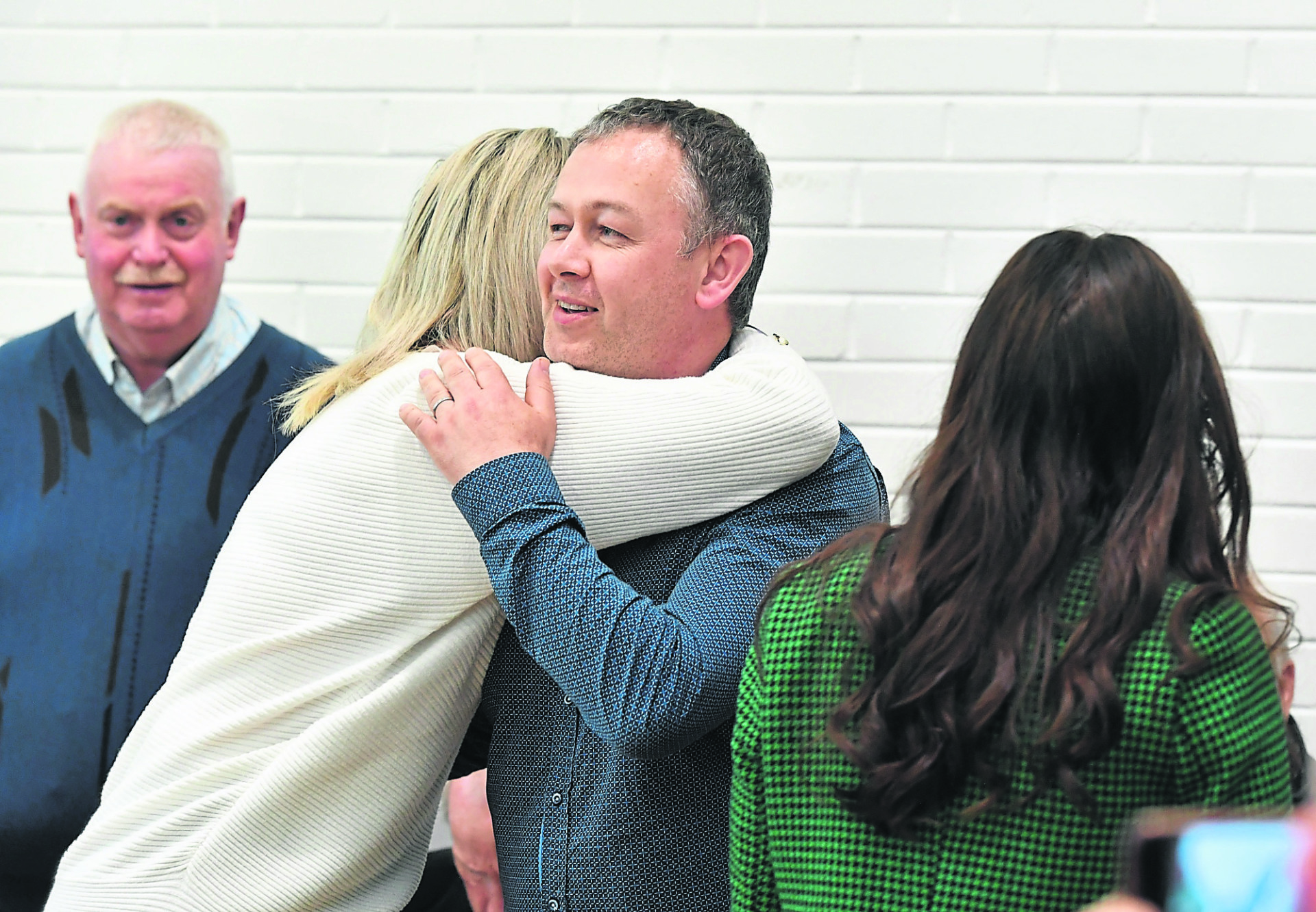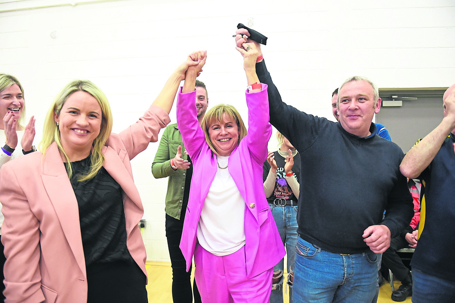 Glenn Campbell Sinn Fein is congratulated by Nicola Brogan.