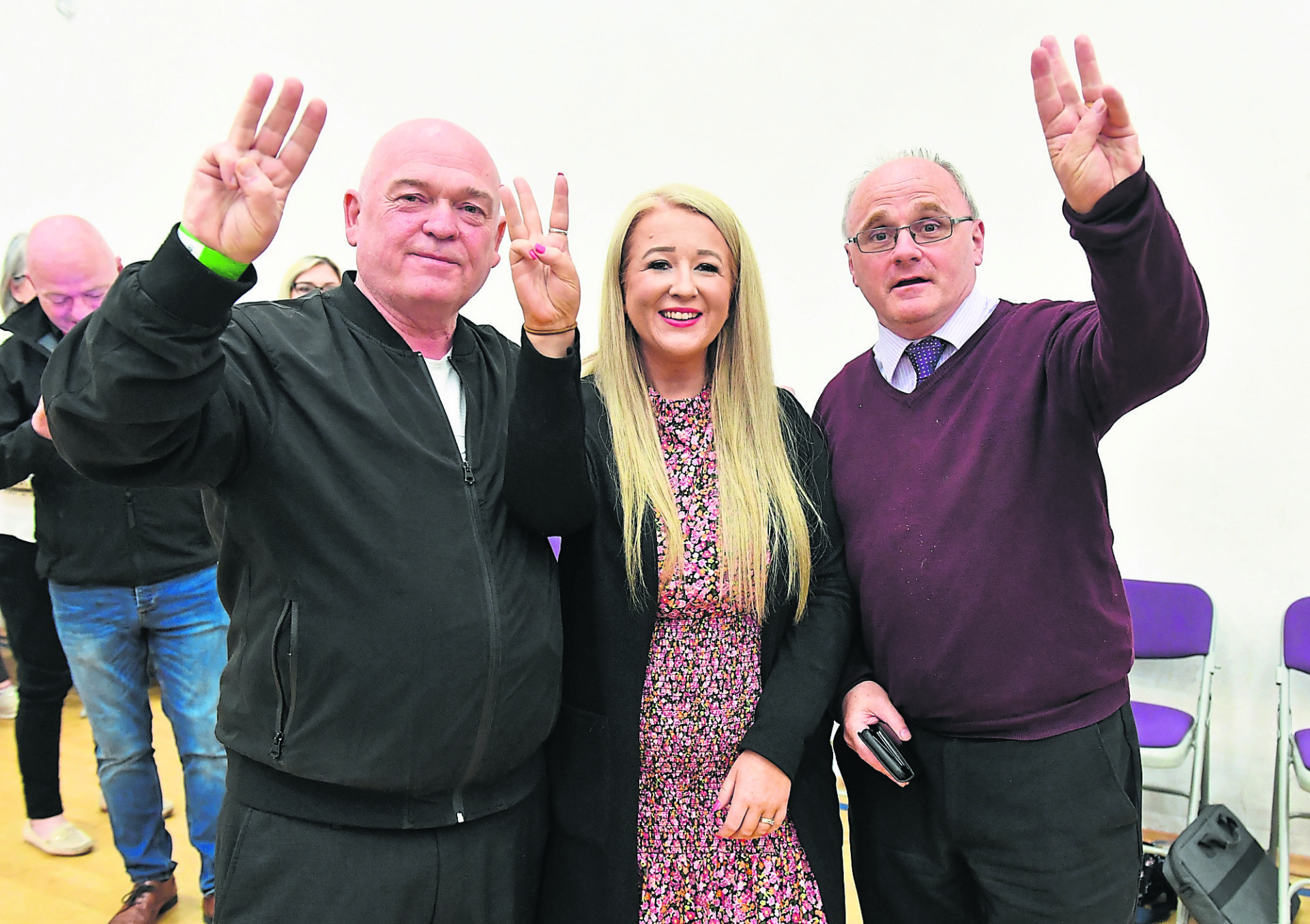 Anne Marie Fitzgerald, Sinn Fein celebrates with her sister Bridge Bradley and husband Kevin.